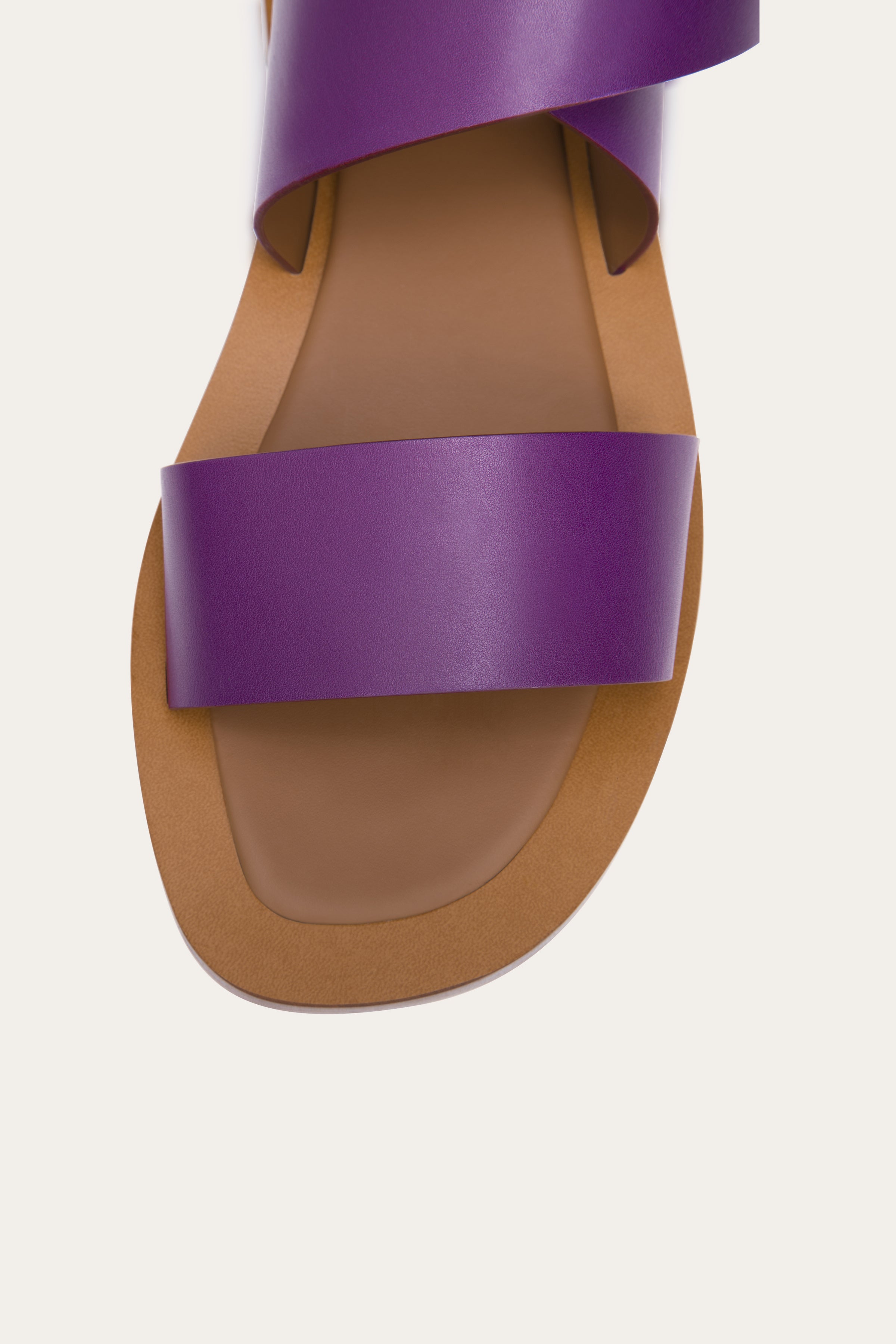 CHF 475.00Crisscross Lace-Up Sandals in full grain purple calfskin leather, lining and sock in tan calfskin leather, memory foam insole for extra comfort, cognac genuine leather sole and ambra rubber tip.